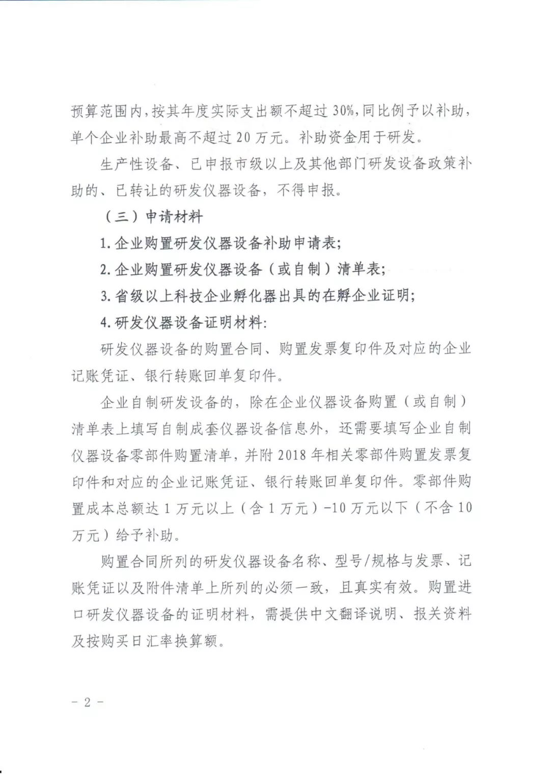 對2018年購置或自制用于研發(fā)的關(guān)鍵儀器設(shè)備原值:1萬元以上(含1萬元)-10萬元以下(不含10萬元),按其年度實(shí)際支出額不超過30%予以補(bǔ)助,單個(gè)企業(yè)補(bǔ)助最高不超過20萬元。補(bǔ)助資金用于研發(fā)。