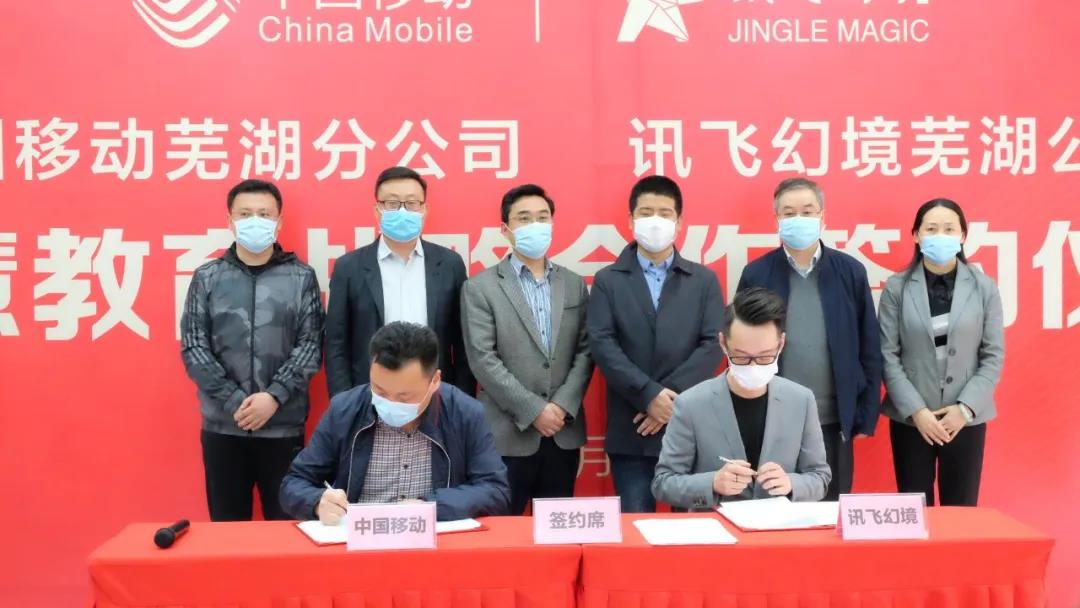鏡湖區(qū)副區(qū)長束曉偉及政府領導、相關單位負責人,訊飛幻境政企事業(yè)部執(zhí)行總裁李寧、中國移動蕪湖分公司總經理楊震等出席并見證簽約儀式,共同為雙方“智慧教育合作基地”揭牌。